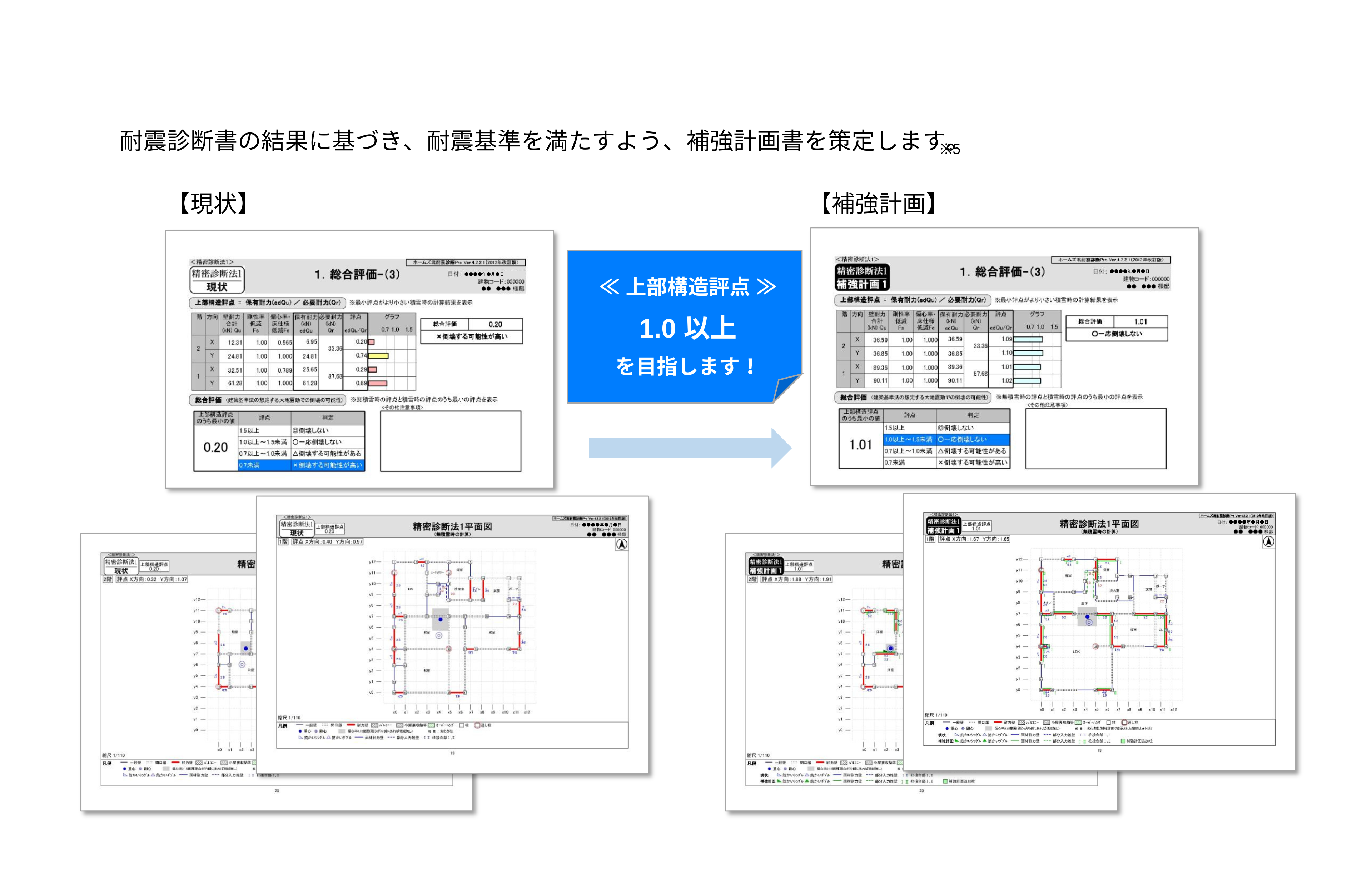 建物の現状を把握し、国の耐震基準を満たす補強計画を策定